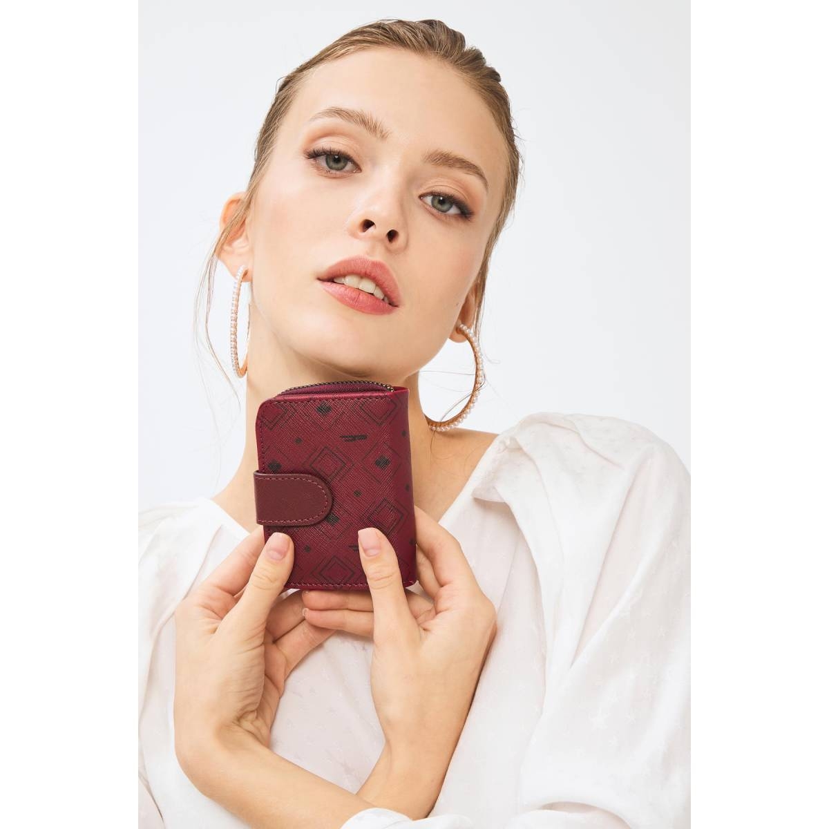 Deri Company Kadın Basic Mini Cüzdan Monogram Desenli Bordo Siyah (8025B) 213017